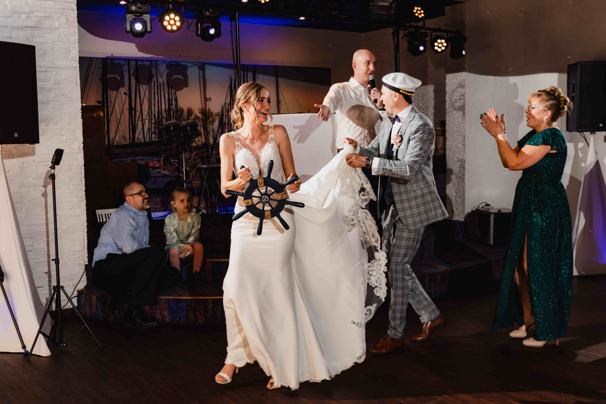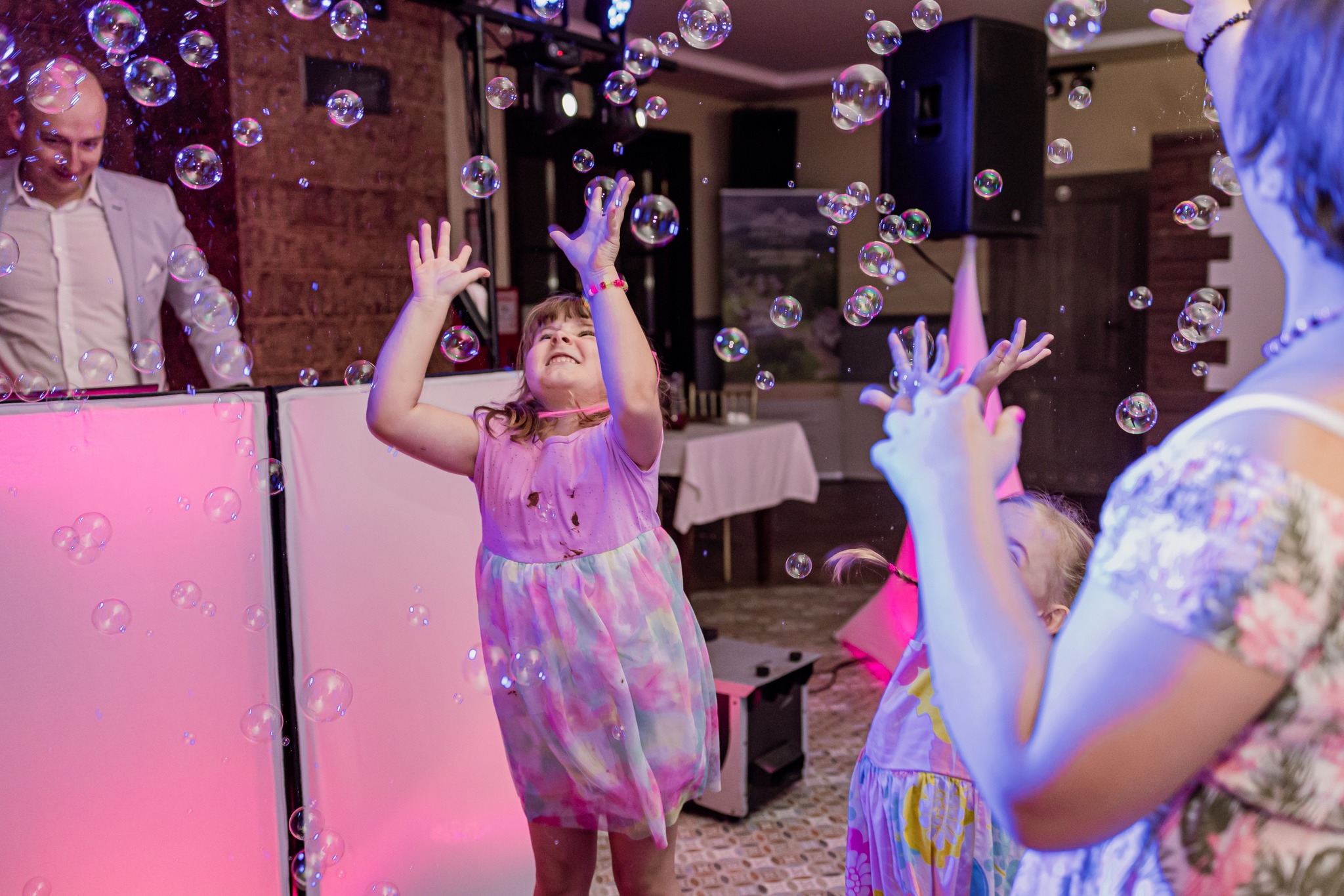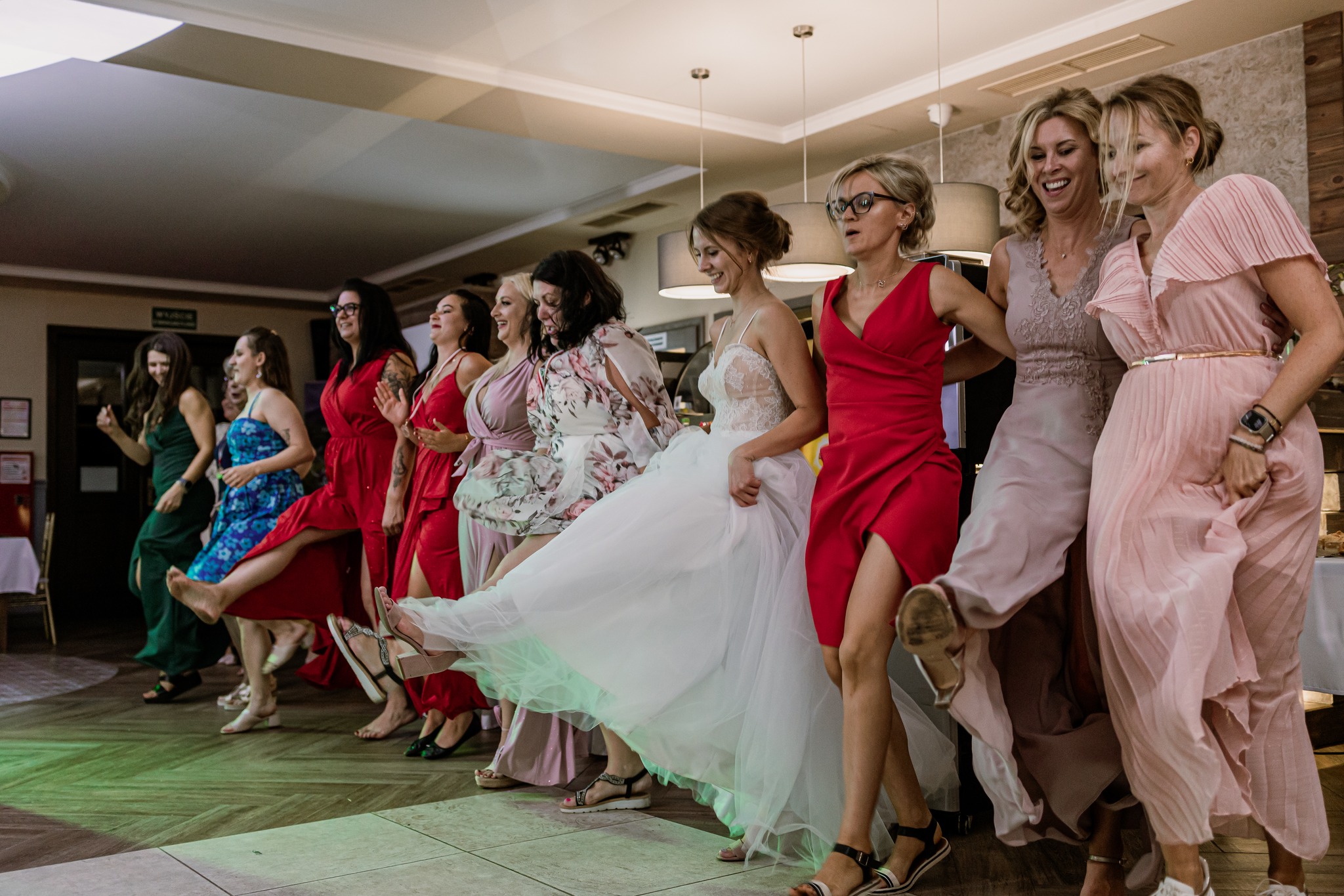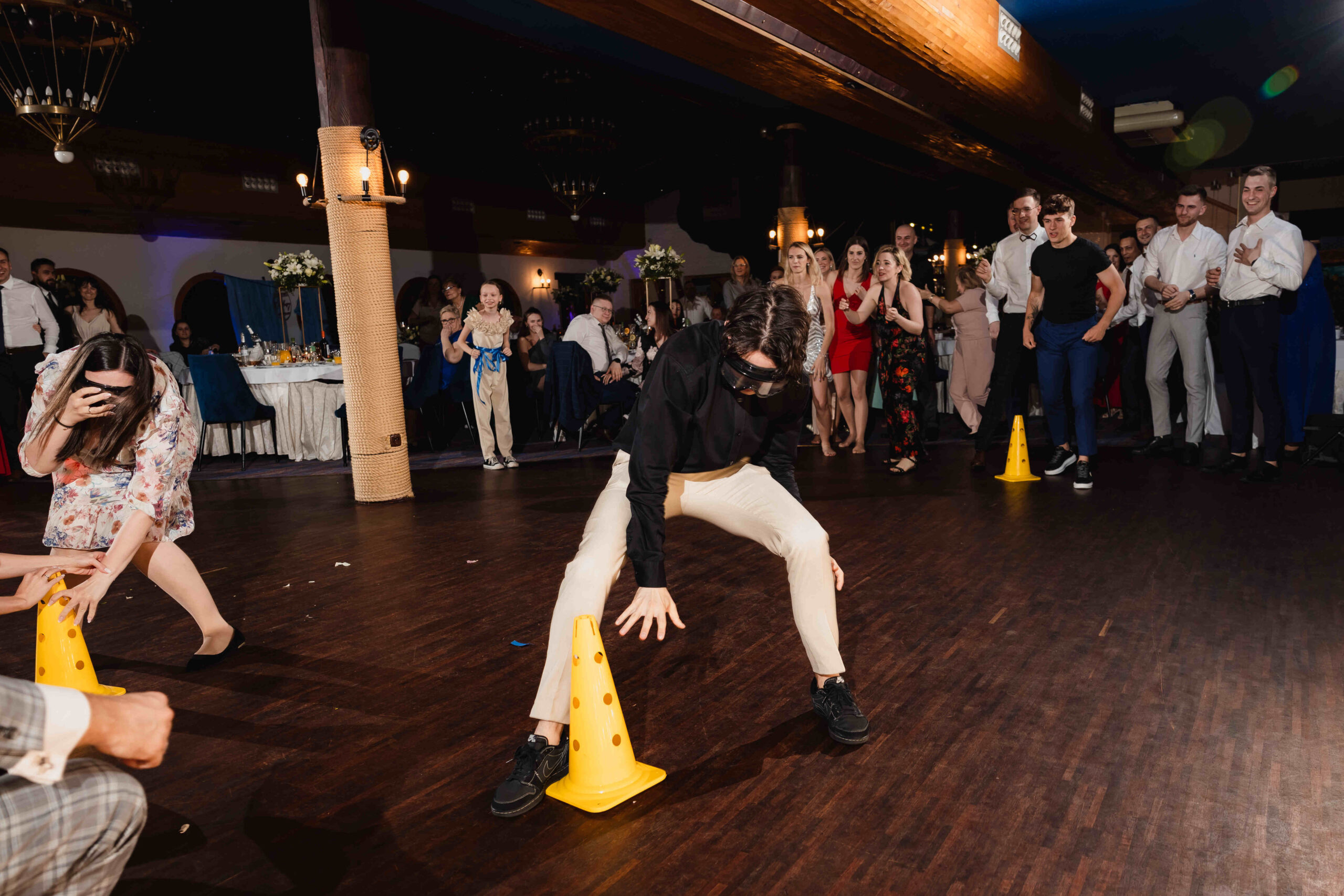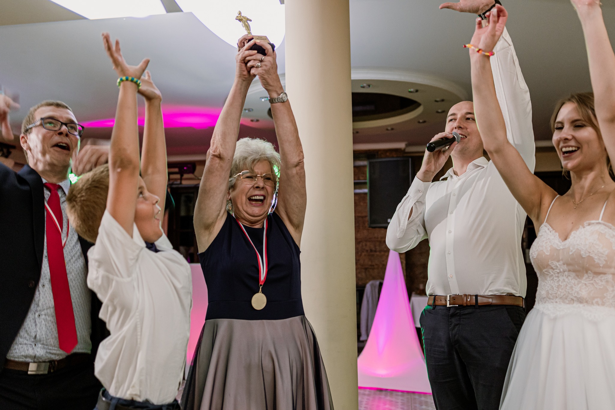 Świetnie bawili się i starsi i młodsi, wszyscy chętnie brali udział w zabawach, niektórzy przespali weselną noc ze zdobytymi medalami na szyjach… Wymyśliśmy sobie z mężem połączenie dwóch piosenek na pierwszy taniec i dostaliśmy ich idealny mix, ze świetną grą aktorską już w trakcie tańca.