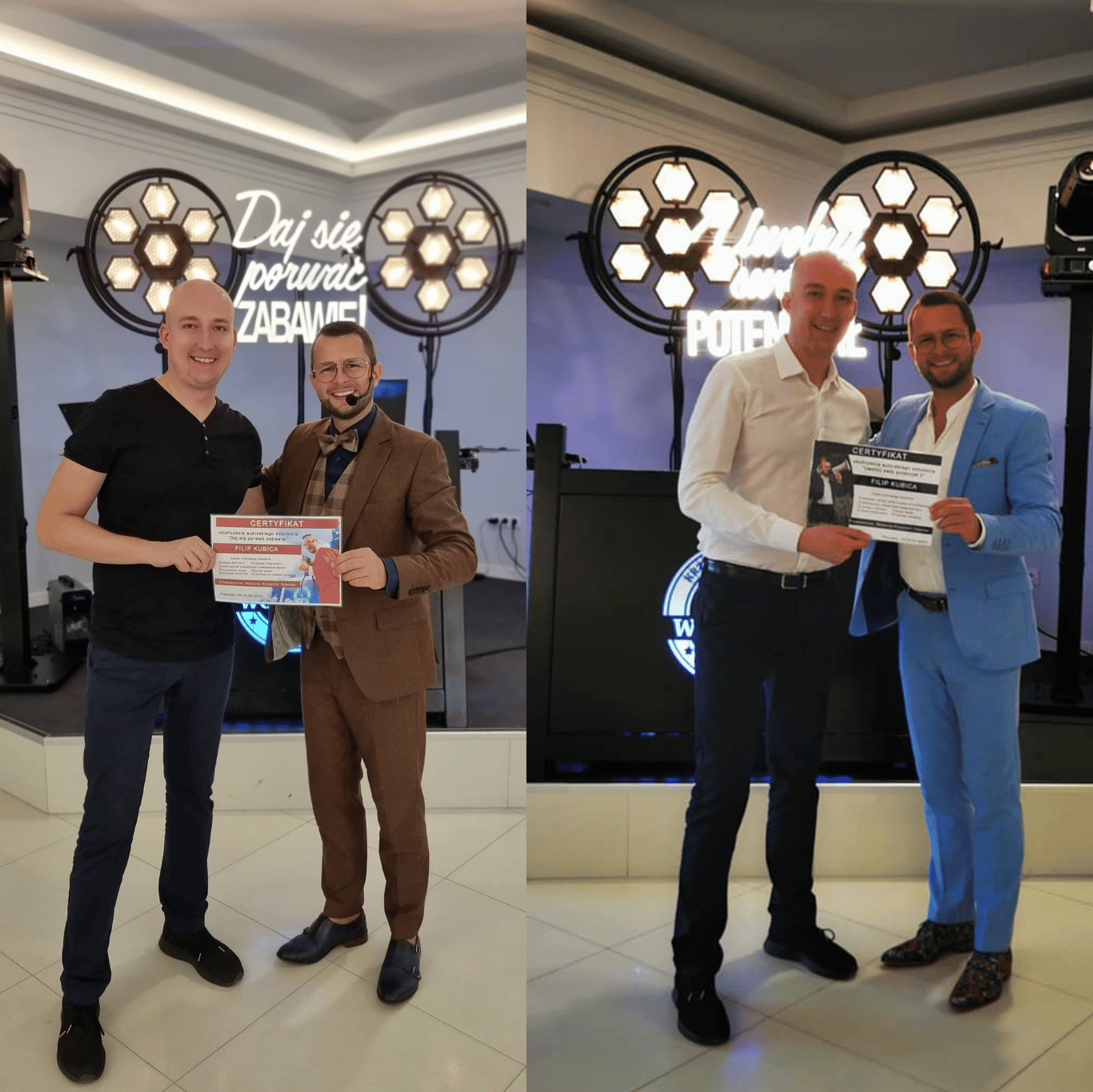 Prowadzę swoją działalność od 2011 roku, zdobywając bogate doświadczenie w organizacji i prowadzeniu różnorodnych wydarzeń. Przez ten czas zagrałem setki imprez, w tym ponad 100 wesel, co pozwoliło mi doskonalić swoje umiejętności i zdobywać cenne doświadczenie w branży rozrywkowej. Moje kompetencje i profesjonalizm potwierdzają dwa ukończone szkolenia u najlepszego wodzireja w Polsce, Krzysztofa Gdańca. Pozwoliły mi one zdobyć dodatkową wiedzę w zakresie prowadzenia imprez.